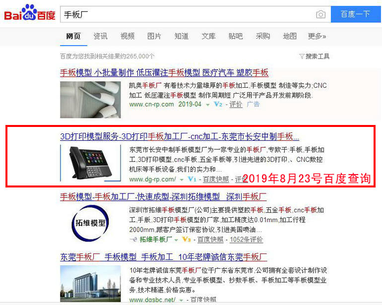 手板加工 : 2019-02-28上線 2019-03-05百度第20(原為第5頁(yè) 第7位) 2019-03-13百度第10名 2019-03-19百度第3名 2019-03-25百度第1名